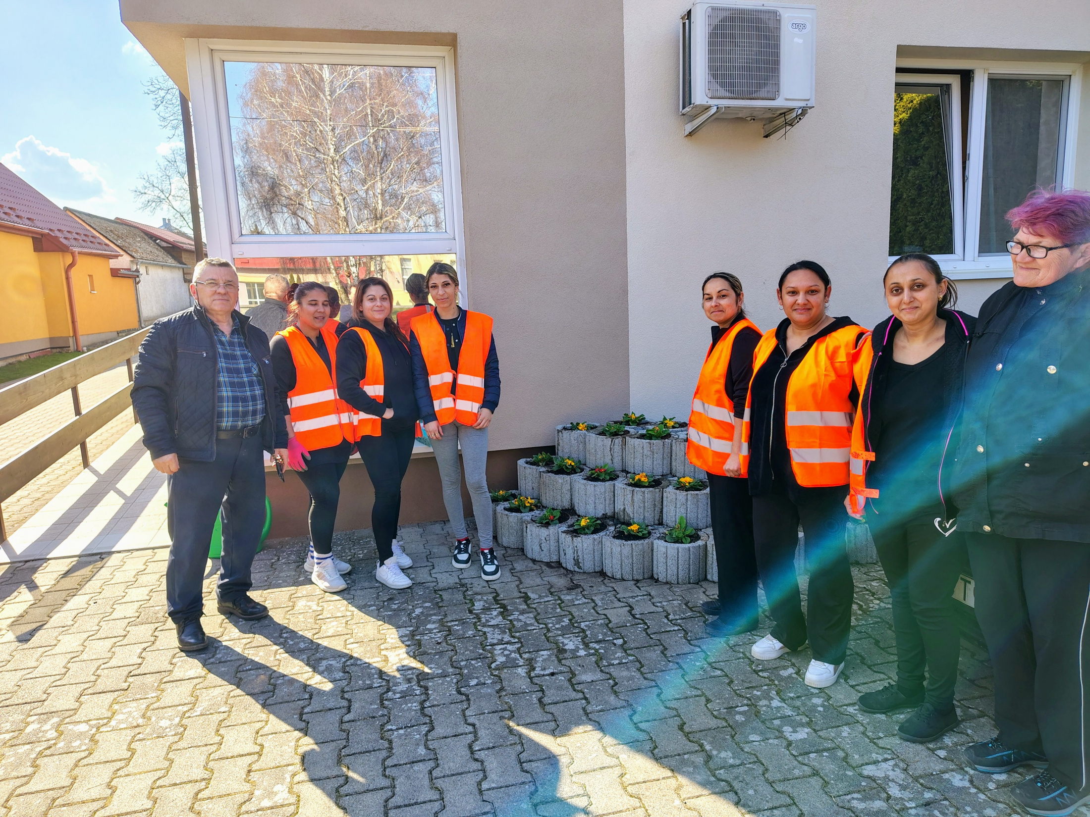 Jarná výsadba kvetov v priestoroch Obecného úradu