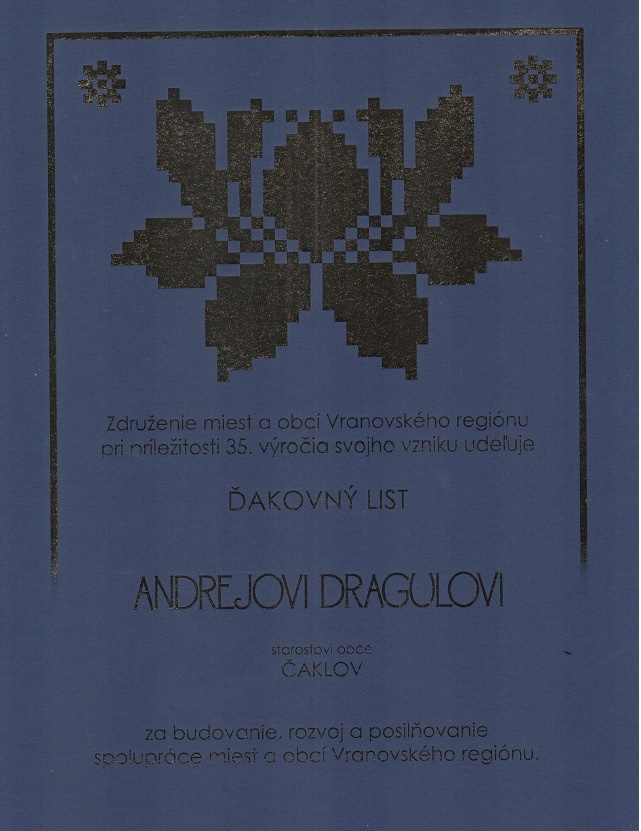 Pánovi starostovi Andrejovi Dragulovi srdečne blahoželáme a ďakujeme za reprezentáciu našej obce.